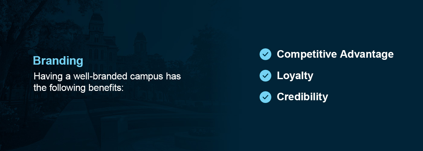- Loyalty: A strong brand leads to higher brand recognition, encouraging student commitment. When students feel a strong connection to their college, they’re more likely to become involved in college activities and become loyal alumni.