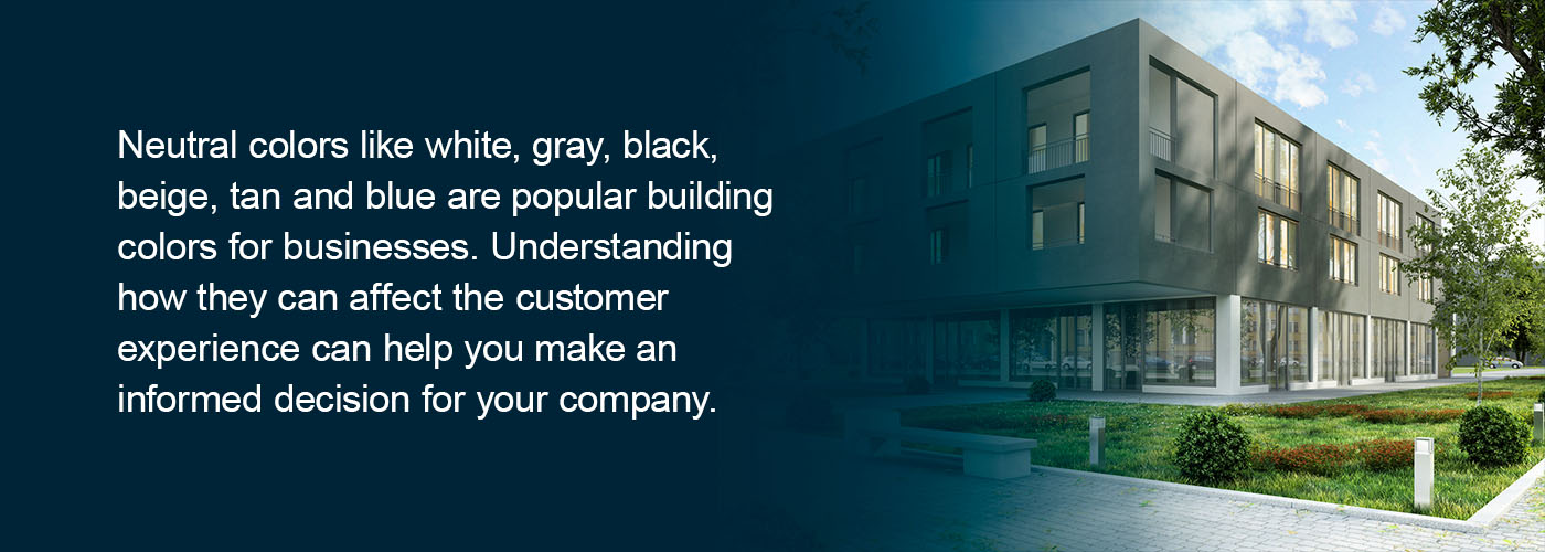 Neutral colors like white, gray, black, beige, tan and blue are popular building colors for businesses. Understanding how they can affect the customer experience can help you make an informed decision for your company.