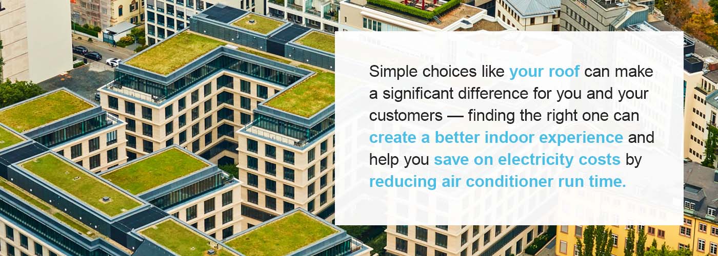 Simple choices like your roof can make a significant difference for you and your customers — finding the right one can create a better indoor experience and help you save on electricity costs by reducing air conditioner run time.
