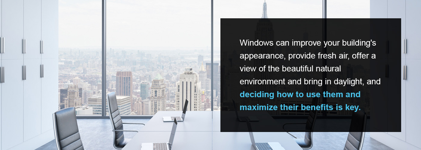 Skylights and windows are major contributors to heat gain, increasing the importance of their placement and size. Windows can improve your building’s appearance, provide fresh air, offer a view of the beautiful natural environment and bring in daylight, and deciding how to use them and maximize their benefits is key.