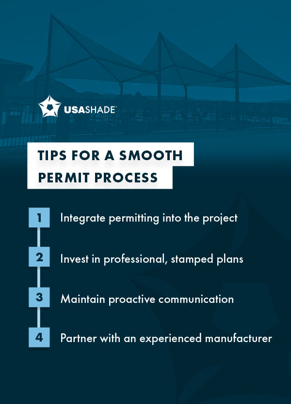 - Partner with an experienced manufacturer: A company that specializes in designing permanent shade structures can simplify your experience by providing insider knowledge and helping you acquire the necessary documentation.
