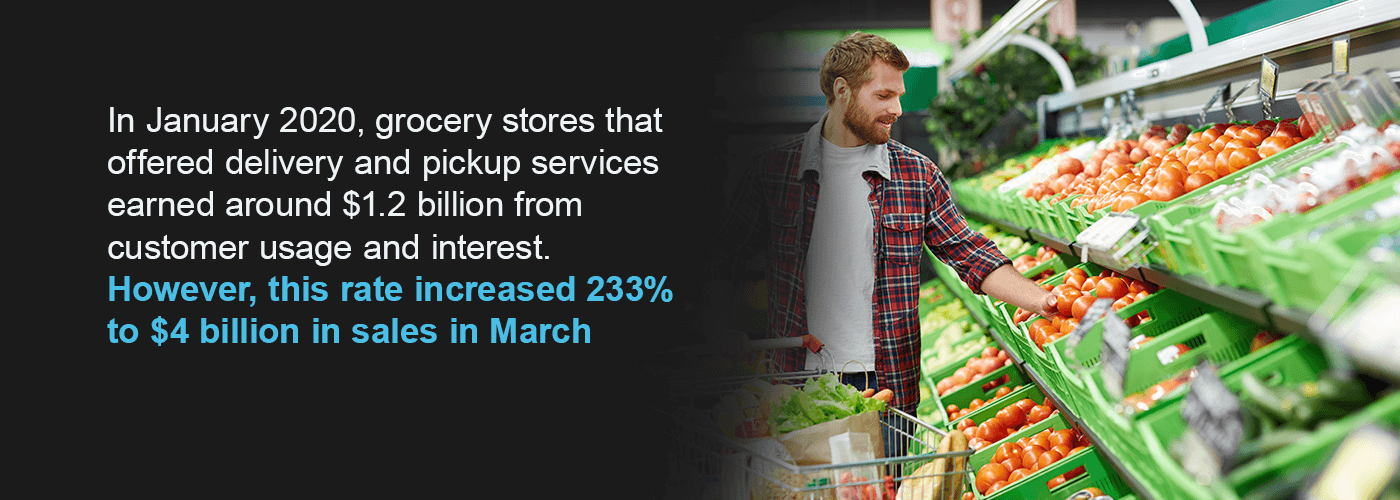 Curbside pickup became an incredibly popular service in the retail sector at the start of the COVID-19 pandemic. In January 2020, grocery stores that offered delivery and pickup services earned around $1.2 billion from customer usage and interest. However, this rate increased 233% to $4 billion in sales in March, allowing grocery stores to continue bringing in money when customers couldn’t enter stores.