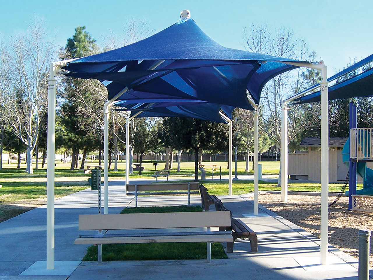The Mariners Peak multi-panel structure provides similar shade to that of a Hip or Pyramid structure. However, the integration of multi-sized shade panels provides an exciting look.